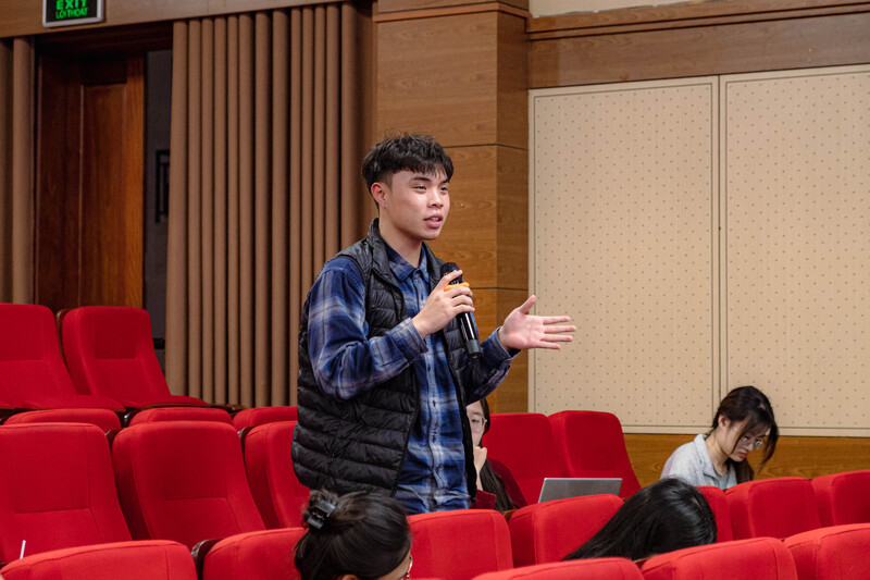 Tiếp nối chương trình, cô Nguyễn Ngọc Huyền - Cán bộ Phòng Hợp tác Quốc tế đã trực tiếp giải đáp các thắc mắc của sinh viên liên quan đến lộ trình học tập, lựa chọn trường đối tác và quá trình chuẩn bị hồ sơ. Những chia sẻ chi tiết và thực tế đã giúp sinh viên hiểu rõ hơn về lộ trình tham gia chương trình, cũng như xây dựng kế hoạch học tập và đăng ký trao đổi một cách phù hợp.