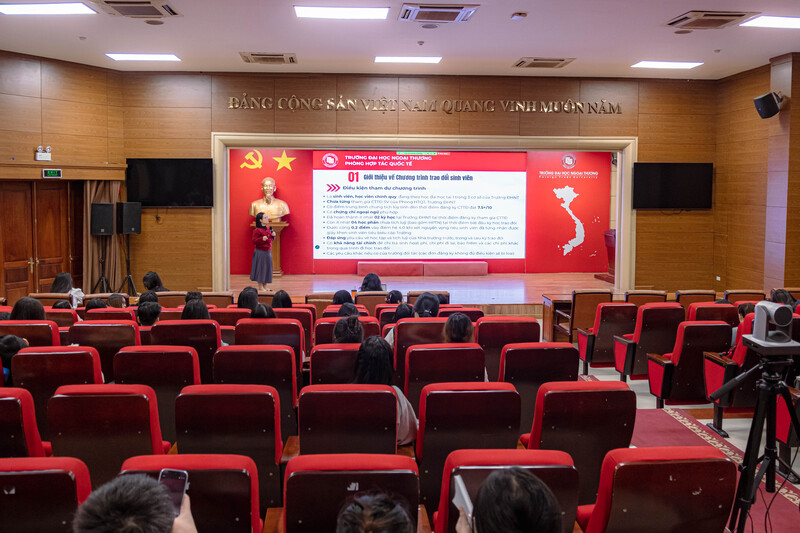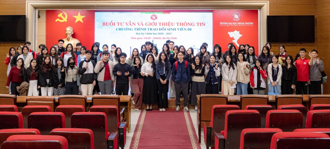 Ngày 16/01/2026, Phòng Hợp tác Quốc tế, Trường Đại học Ngoại Thương đã tổ chức Buổi Giới thiệu và Tư vấn thông tin Chương trình Trao đổi Sinh viên dành cho học kỳ I năm học 2026 - 2027 (Kỳ Thu 2026), thu hút sự quan tâm của đông đảo sinh viên đang tìm hiểu và có nguyện vọng tham gia chương trình trao đổi quốc tế.