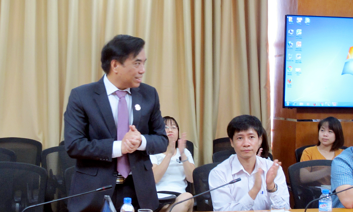 Chủ tịch Hiệp hội Kenichiro Ohtake cám ơn PGS, TS Bùi Anh Tuấn, Hiệu trưởng nhà trường đã có bài phát biểu ý nghĩa và sâu sắc. Chủ tịch Hiệp hội Kenichiro Ohtake đồng thời gửi lời cảm ơn tới PGS, TS Bùi Anh Tuấn cũng như TS Trần Thị Thu Thủy - Trưởng khoa tiếng Nhật và trường ĐH Ngoại thương đã luôn đồng hành, hỗ trợ Hiệp hội trong việc đưa phương pháp ghi sổ kép vào giảng dạy tại trường và mong rằng sẽ tiếp tục xây dựng mối quan hệ hữu nghị Nhật Bản - Việt Nam ngày càng phát triển tốt đẹp hơn nữa.