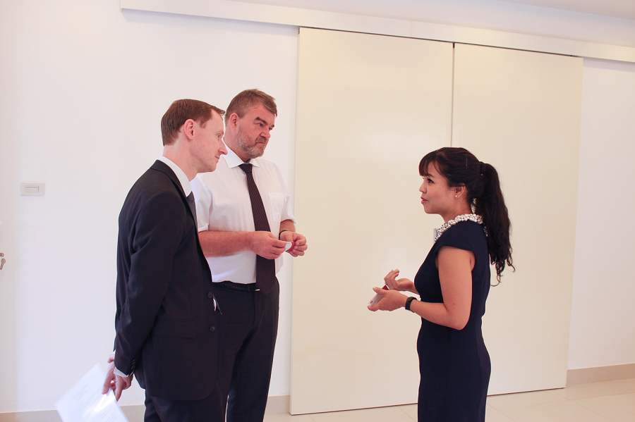 PGS. TS. Hồ Thúy Ngọc trao đổi cùng với ngài Bo Mønsted và ngài Henrik Hjorth - Tham tán tại Bộ Ngoại giao Đan Mạch về hợp tác giữa hai trường và những hỗ trợ của chính phủ Đan Mạch
