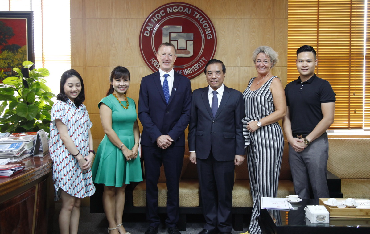 Tiếp đoàn có PGS. TS Bùi Anh Tuấn – Hiệu trưởng Nhà trường, TS. Phạm Thu Hương – Phó Hiệu trưởng, PGS, TS Hồ Thúy Ngọc - Trưởng Khoa ĐTQT.