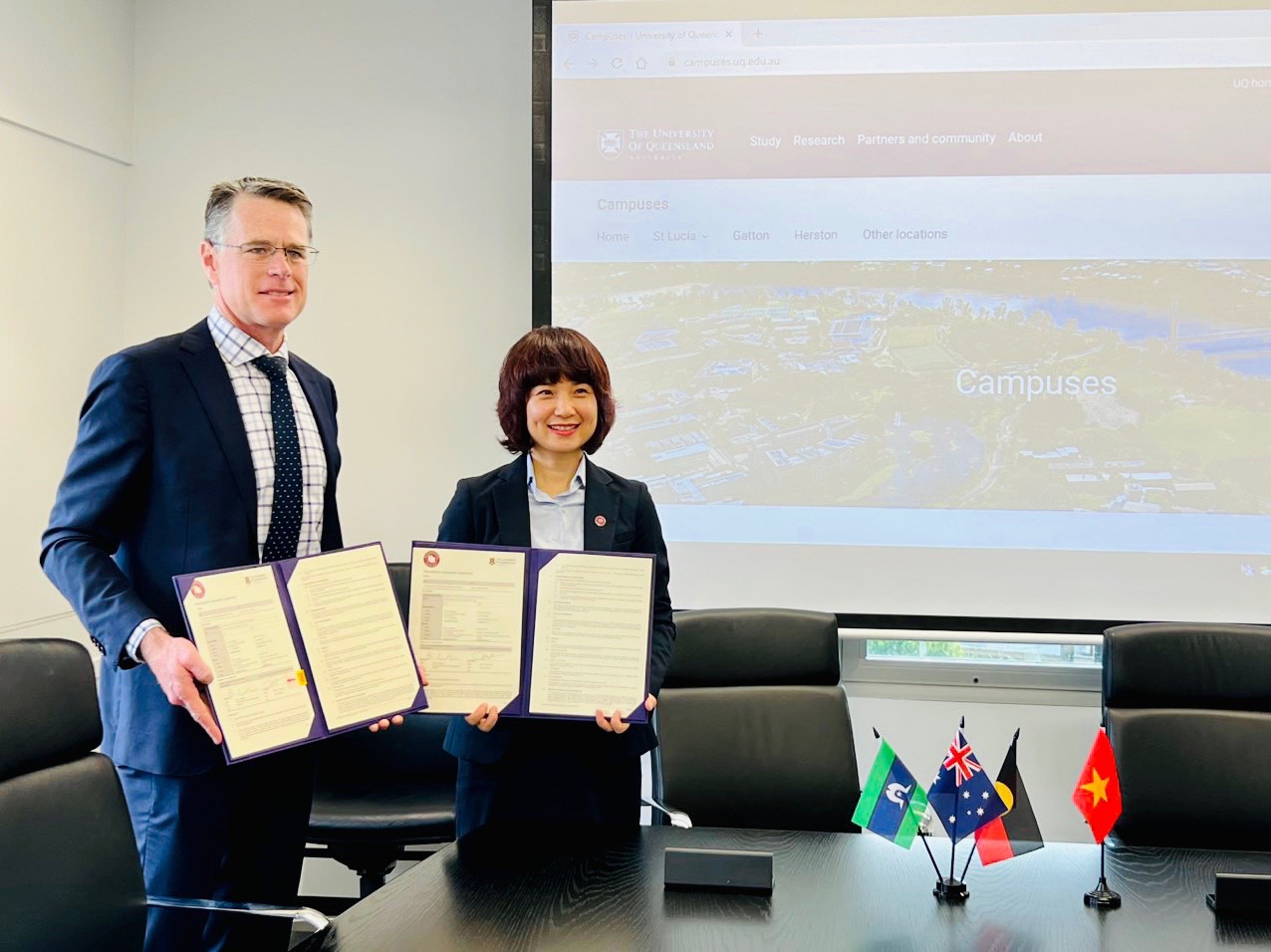 PGS, TS Phạm Thu Hương và ông Brett Lovegrove đã đại diện hai cơ sở giáo dục đại học ký thoả thuận hợp tác toàn diện.