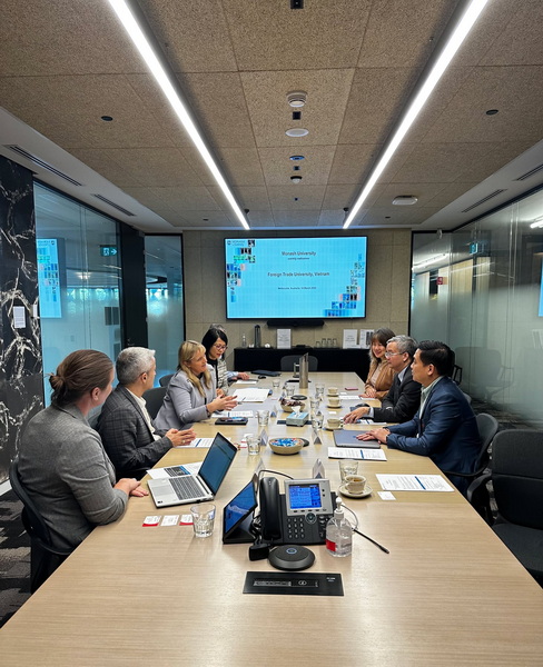 Tại ĐH Monash - Đại học nằm trong top 37 các trường đại học hàng đầu trên thế giới theo bảng xếp hạng QS Ranking 2025, đoàn công tác đã có buổi làm việc với lãnh đạo cấp cao để thảo luận về các phương thức hợp tác trong tương lai. Đặc biệt, hai bên đã đi đến thống nhất về việc triển khai chương trình liên kết đào tạo Cử nhân Tài chính, mang đến cho sinh viên Khoa Đào tạo Quốc tế, Trường ĐH Ngoại thương cơ hội học tập tại môi trường giáo dục tiên tiến của Monash. Ngoài ra, các nội dung hợp tác khác như trao đổi giảng viên, nghiên cứu chung và hỗ trợ sinh viên quốc tế cũng được đưa ra bàn thảo. Sự kiện ký kết thỏa thuận hợp tác giữa hai bên đánh dấu một cột mốc quan trọng trong quan hệ hợp tác giáo dục giữa Trường ĐH Ngoại thương và ĐH Monash, hứa hẹn sẽ mang lại nhiều lợi ích thiết thực cho sinh viên và giảng viên hai trường.