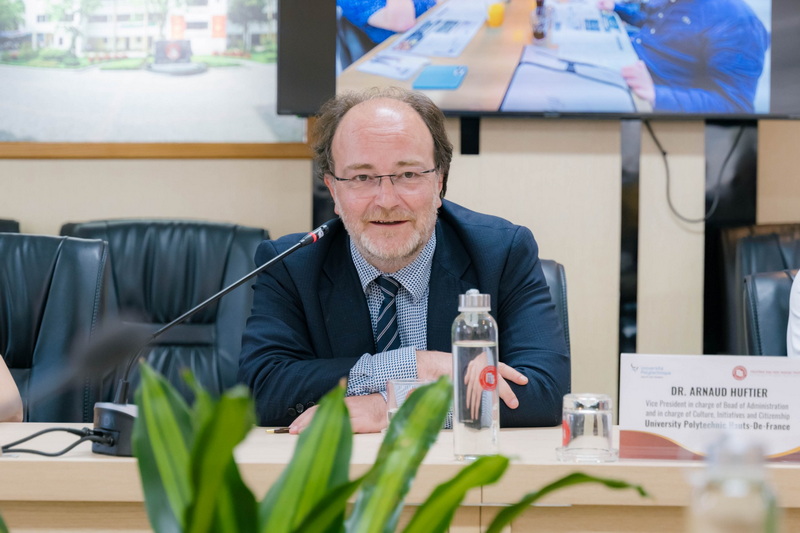 Đoàn công tác UPHF đến thăm và làm việc tại Trường ĐH Ngoại thương gồm: GS Arnaud HUFTIER – Phó Chủ tịch phụ trách Hội đồng quản trị, Văn hóa, Sáng kiến và Công dân; GS Mourad ABED – Phó Chủ tịch phụ trách Công nghệ số, Đổi mới giáo dục và Chiến lược dự án; PGS, TS Lê Thị Mười – Phụ trách Quan hệ quốc tế tại khu vực Đông Nam Á.