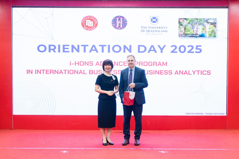 Trong khuôn khổ chuyến công tác của GS, TS Brent Ritchie – Hiệu trưởng Trường Kinh doanh, ĐH Queensland (Úc), ngày 8/10/2025, Ngày hội định hướng – Orientation Day 2025 dành cho sinh viên Chương trình tiên tiến I-Hons hợp tác với University of Queensland về kinh doanh quốc tế & phân tích dữ liệu kinh doanh(i-Hons) Khóa 64 đã diễn ra thành công tốt đẹp, đánh dấu khởi đầu hành trình học tập của thế hệ i-Honsers mới. Thông qua chương trình, sinh viên đã được giới thiệu về mục tiêu, triết lý và định hướng đào tạo của i-Hons – chương trình được thiết kế với sự kết hợp giữa chuẩn mực học thuật quốc tế và định hướng ứng dụng thực tiễn. PGS, TS Phạm Thu Hương - Hiệu trưởng Nhà trường trao tặng quà kỷ niệm của Nhà trường tới GS, TS Brent Ritchie – Hiệu trưởng Trường Kinh doanh, ĐH Queensland (Úc) Lãnh đạo hai trường cùng thảo luận về những kết quả đã đạt được trong hợp tác đào tạo chương trình tiên tiến i-Hons ngành Kinh doanh quốc tế và Phân tích dữ liệu kinh doanh năm học 2024-2025 góp phần nâng cao các năng lực của sinh viên theo Mô hình đào tạo tích hợp Phát triển nghề nghiệp (Career Development Integrated Training Program), đáp ứng các yêu cầu ngày càng khắt khe của thị trường lao động. Bên cạnh đó, các thầy cô cũng trao đổi về các cơ hội đẩy mạnh hoạt động chia sẻ và hợp tác nghiên cứu giữa giảng viên của hai trường, cũng như chia sẻ các kinh nghiệm thực tiễn về triển khai đào tạo và các hoạt động hỗ trợ khác nhằm nâng cao năng lực đội ngũ của hai trường. Trong ngày 8/10/2025, Ngày hội định hướng – Orientation Day 2025 dành cho sinh viên Chương trình tiên tiến I-Hons hợp tác với University of Queensland về kinh doanh quốc tế & phân tích dữ liệu kinh doanh(i-Hons) Khóa 64 đã diễn ra thành công tốt đẹp, đánh dấu khởi đầu hành trình học tập của thế hệ i-Honsers mới. Thông qua chương trình, sinh viên đã được giới thiệu về mục tiêu, triết lý và định hướng đào tạo của i-Hons – chương trình được thiết kế với sự kết hợp giữa chuẩn mực học thuật quốc tế và định hướng ứng dụng thực tiễn.