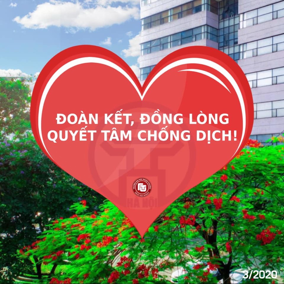 Kể từ ngày hôm nay, 08.3.2020, Hà Nội và nhiều địa phương trên cả nước thực sự bắt đầu bước vào giai đoạn chống dịch cam go và quyết liệt nhất. Nhà trường kêu gọi tất cả cán bộ, viên chức, người lao động, các bạn sinh viên, học viên, NCS đoàn kết, đồng lòng, quyết tâm chống dịch!