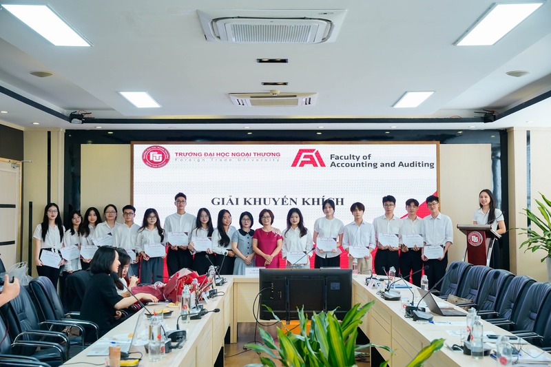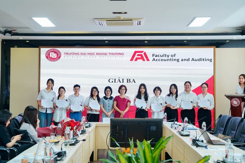 Cũng trong hội thảo, Khoa Kế toán – Kiểm toán đã tổ chức lễ trao giải cho các nhóm sinh viên đạt thành tích xuất sắc trong Cuộc thi Sinh viên Nghiên cứu Khoa học cấp Khoa. Đây là sự ghi nhận và khích lệ những nỗ lực nghiên cứu của thầy và trò Khoa, đồng thời góp phần lan tỏa tinh thần học thuật và nuôi dưỡng niềm đam mê khoa học cho các em sinh viên.