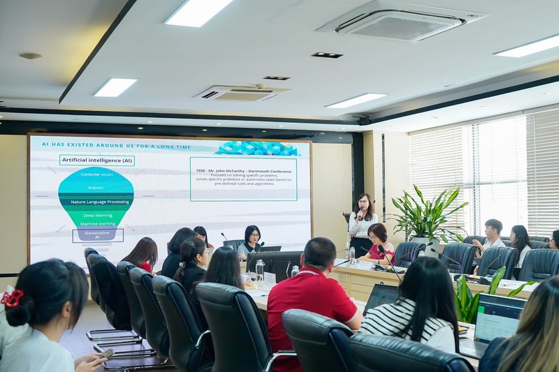 Phát biểu mở đầu hội thảo, PGS, TS Vũ Thị Hiền khẳng định chủ đề hội thảo có ý nghĩa đặc biệt trong bối cảnh hiện nay – khi sự phát triển công nghệ đang làm thay đổi mạnh mẽ mọi lĩnh vực, trong đó có giáo dục. Cô nhấn mạnh ba định hướng chính mà Nhà trường đang theo đuổi: đào tạo liên ngành, tăng cường ứng dụng công nghệ và gắn kết chặt chẽ hơn với thực tiễn để nâng cao chất lượng đào tạo và đáp ứng nhu cầu xã hội. Thông qua buổi hội thảo, Nhà trường cũng muốn lắng nghe những góp ý tới từ đại diện các doanh nghiệp để xây dựng 1 chương trình đào tạo hiệu quả, thu hẹp khoảng cách giữa lý thuyết và thực tiễn, nâng cao năng lực cạnh tranh cho sinh viên khi ra trường.