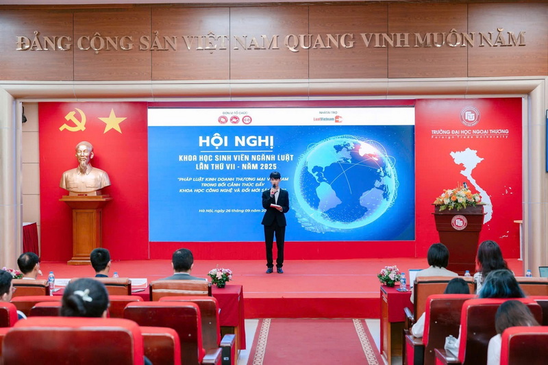 Ngày 26/9/2025, Khoa Luật Trường ĐH Ngoại Thương đã tổ chức thành công Hội nghị Khoa học Sinh viên ngành Luật lần thứ VII - Năm 2025 với chủ đề “Pháp luật kinh doanh thương mại Việt Nam trong bối cảnh thúc đẩy khoa học công nghệ và đổi mới sáng tạo”.