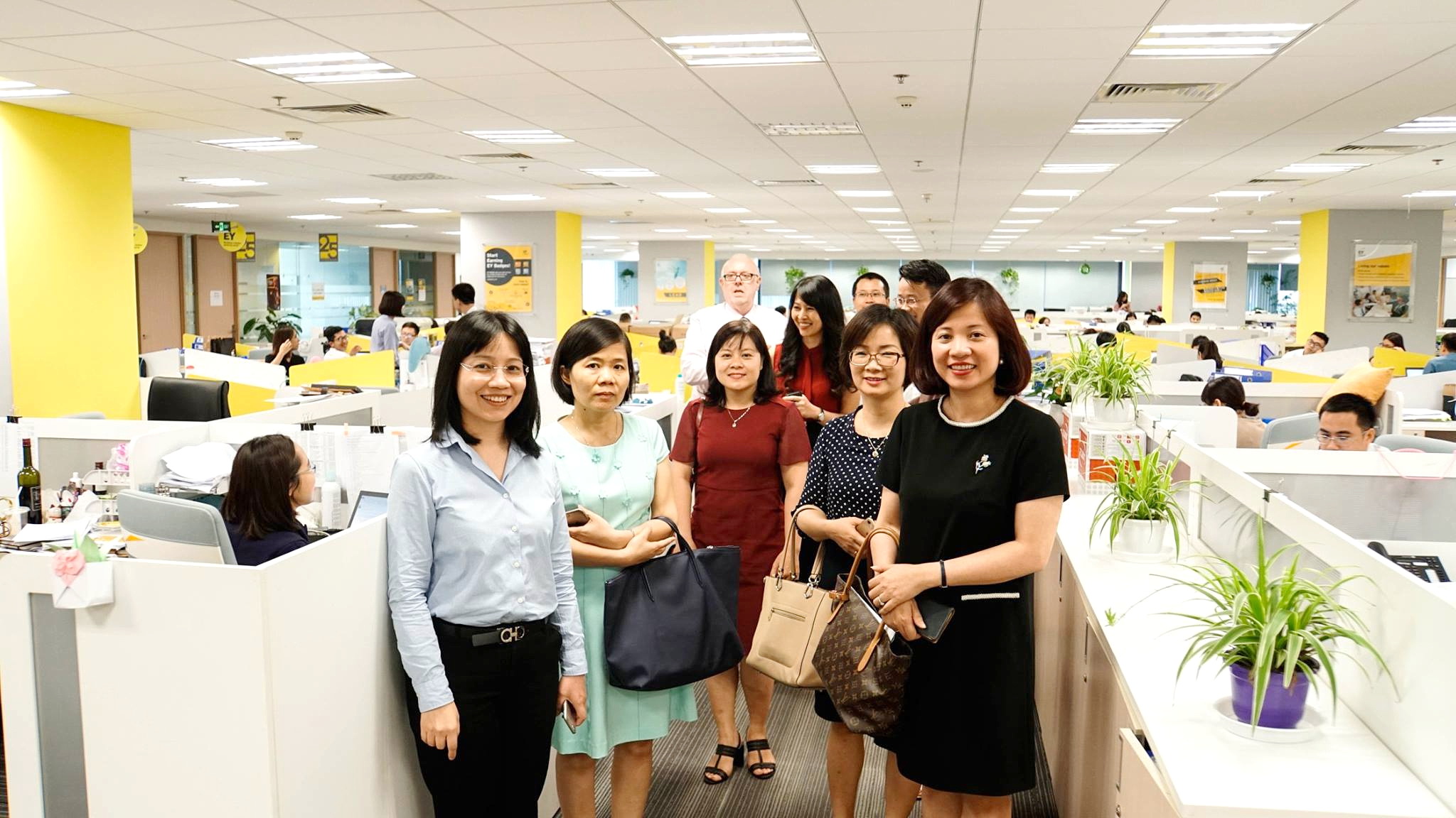 Cũng trong khuôn khổ buổi lễ, các thầy cô giáo và các em sinh viên Nhà trường đã được đại diện công ty EY Việt Nam dẫn đi tham quan thực tế môi trường làm việc chuyên nghiệp và hiện đại tại EY Việt Nam.