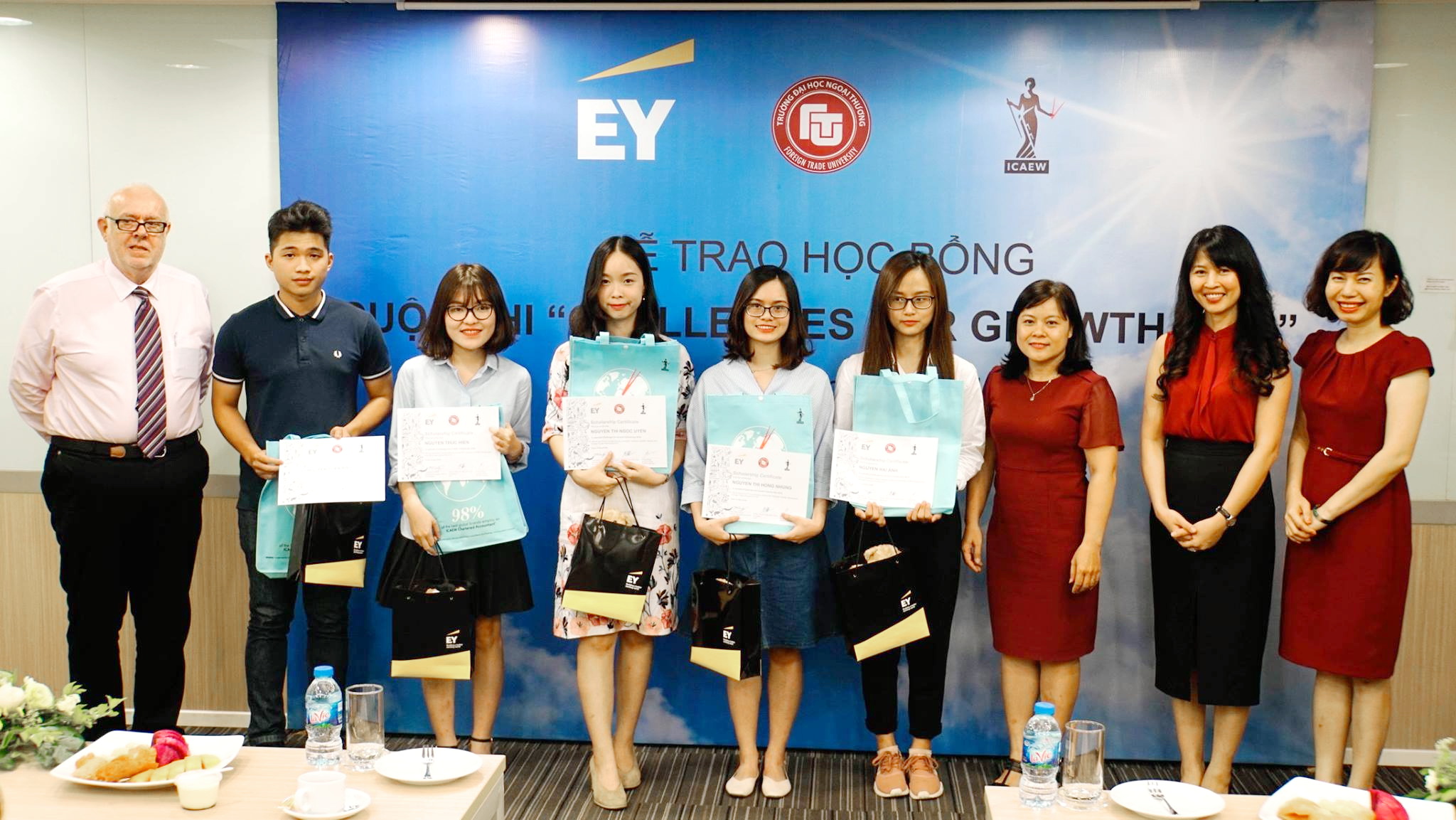 Ngày 14/5/2018, EY Việt Nam và ICAEW Việt Nam đã tổ chức lễ trao học bổng cuộc thi "Challenges for growth 2018" dành cho các bạn sinh viên xuất sắc trường Đại học Ngoại thương.