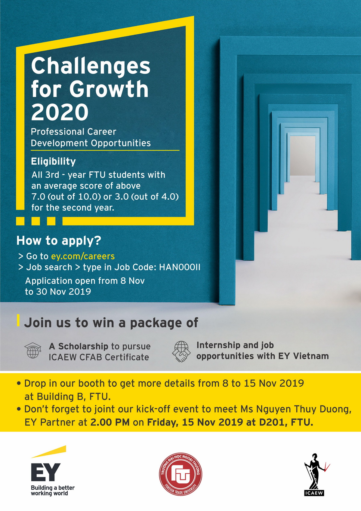 Tiếp nối những thành công ấy, EY Việt Nam, ICAEW và trường Đại học Ngoại thương tiếp tục tổ chức cuộc thi “Challenges for Growth 2020” vào tháng 11/2019.