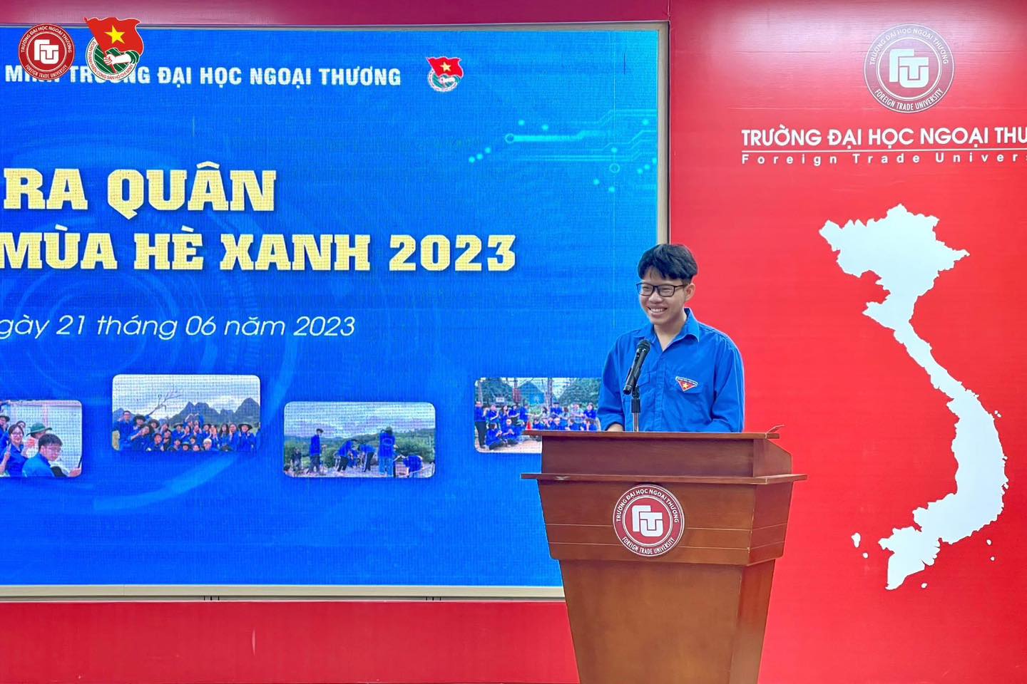 Ngày 21/06/2023, Đoàn TNCS Hồ Chí Minh Trường ĐH Ngoại thương đã tổ chức Lễ ra quân Chiến dịch “Mùa hè xanh 2023” và Tập huấn kỹ năng tình nguyện viên mùa hè xanh 2023.