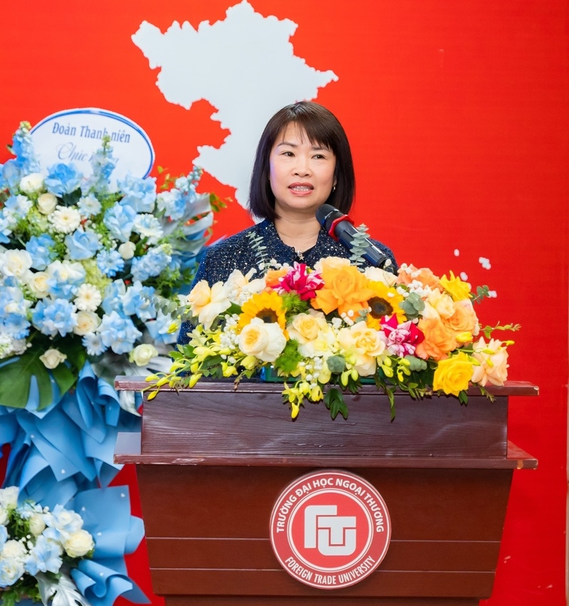 Phát biểu tại buổi lễ, PGS, TS Vũ Thị Hiền bày tỏ niềm vui và tự hào khi nhìn lại những thành tích nổi bật mà công tác Hội và phong trào sinh viên đã đạt được trong năm học 2024–2025. Những thành tựu của Trường ĐH Ngoại Thương hôm nay luôn có sự đóng góp, cống hiến to lớn của các bạn sinh viên, được tạo nên từ sự nỗ lực phấn đấu không ngừng trong suốt quá trình học tập và rèn luyện. Bên cạnh đó, PGS, TS Vũ Thị Hiền cũng ghi nhận vai trò của Hội Sinh viên Trường ĐH Ngoại Thương trong việc khơi dậy tinh thần sáng tạo, nuôi dưỡng niềm say mê học tập và rèn luyện của tuổi trẻ nhà trường thông qua các chương trình, hoạt động thiết thực. Đặc biệt, PGS, TS Vũ Thị Hiền nhấn mạnh trong thời gian tới, Hội Sinh viên Trường ĐH Ngoại Thương cần chú trọng hơn nữa việc thu hút hội viên, tạo nguồn, mở rộng phạm vi lan tỏa của phong trào, đổi mới nội dung và phương thức triển khai để nhiều sinh viên được tiếp cận, được tham gia và được hưởng lợi từ các hoạt động của Hội.