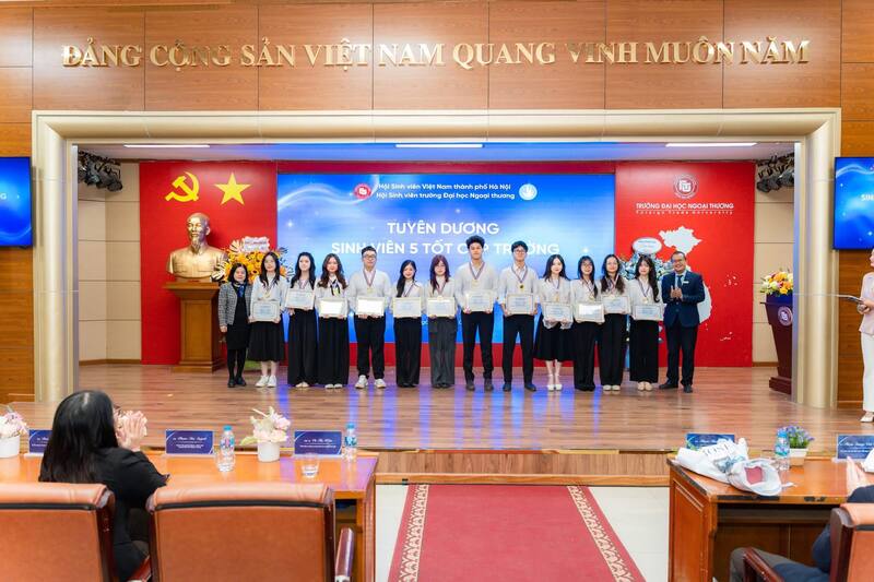 Năm học 2024 - 2025 vừa qua, trường Đại học Ngoại Thương tự hào khi có 140 sinh viên đạt danh hiệu “Sinh viên 5 tốt” cấp Trường, 59 sinh viên đạt danh hiệu “Sinh viên 5 tốt” cấp Thành phố, 01 sinh viên nhận giải thưởng “Sao Tháng Giêng” cùng 4 sinh viên vinh dự đạt danh hiệu “Sinh viên 5 tốt” cấp Trung ương. Đây chính là minh chứng cho sự nỗ lực không ngừng nghỉ của các bạn sinh viên, cho sự tích cực của Nhà trường và Hội Sinh viên trong công tác tuyên truyền và động viên sinh viên. Đặc biệt hơn cả, điều đáng ghi nhận không chỉ nằm ở số lượng sinh viên đạt danh hiệu, mà ở chỗ phong trào đã từng bước trở thành mục tiêu phấn đấu quen thuộc, có tính định hướng trong cộng đồng sinh viên.