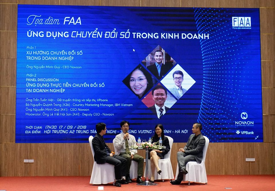 Trong khuôn khổ ngày hội năm nay đã diễn ra tọa đàm "Ứng dụng thực tiễn chuyển đổi số tại doanh nghiệp " với sự tham gia của 4 diễn giả cũng là 4 cựu sinh viên thành đạt của trường ĐHNT gồm: Ông Trần Tuấn Việt - Giám đốc truyền Thông và tiếp thị Novaon, Bà Nguyễn Quỳnh Trang - Giám đốc Marketing IBM Việt Nam, Ông Nguyễn Minh Quý và Ông Lê Hải Sơn - Phó Giám đốc Novaon.