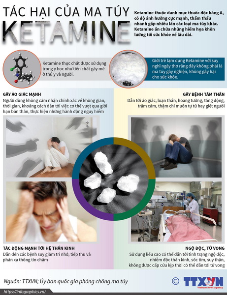 Ketamine thuộc danh mục thuốc độc bảng A, có độ ảnh hưởng cực mạnh, thẩm thấu nhanh gấp nhiều lần các loại ma túy khác. Ketamine ẩn chứa những hiểm họa khôn lường tới sức khỏe về lâu dài.