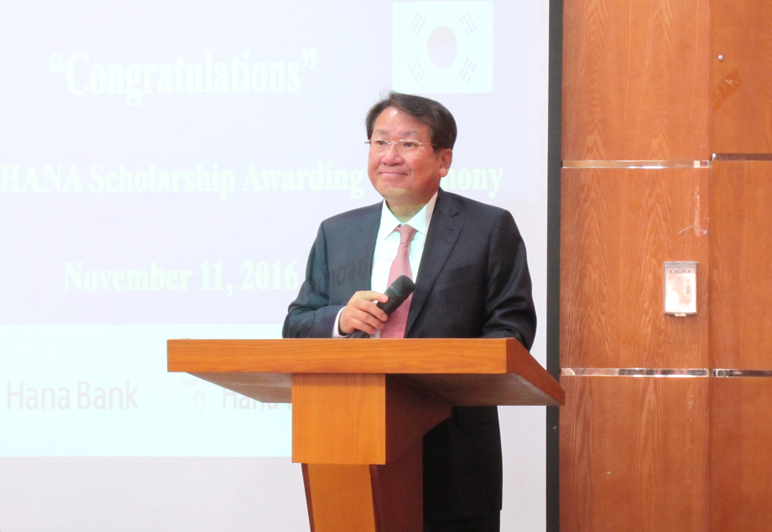 Phát biểu tại lễ trao học bổng, ông Kim Han Joo - Chủ tịch Quỹ tài trợ tài chính Hana cho rằng, tới sự tăng cường không ngừng quan hệ giao lưu hợp tác trên nhiều lĩnh vực của Việt Nam và Hàn Quốc như chính trị, kinh tế, văn hóa kể từ khi thiết lập quan hệ ngoại giao vào năm 1992, Hàn Quốc giữ vị trí quan trọng trong các nước trao đổi thương mại, đầu tư và cũng là nước đứng thứ 3 trong các nước có doanh nghiệp đầu tư nước ngoài vào Việt Nam. Đặc biệt, sau khi hiệp định thương mại tự do Hàn - Việt FTA đã được ký kết vào tháng 12 năm 2015, Hàn Quốc giữ vị trí đứng đầu trong các nước đầu tư vào Việt Nam 2 năm liên tục. Đây là tiền đề để giao lưu kinh tế của hai nước phát triển mạnh mẽ hơn nữa.