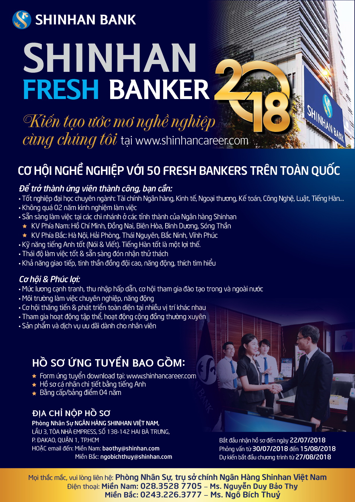 Cơ hội trở thành FRESH BANKER tại Ngân hàng Shinhan Việt Nam.