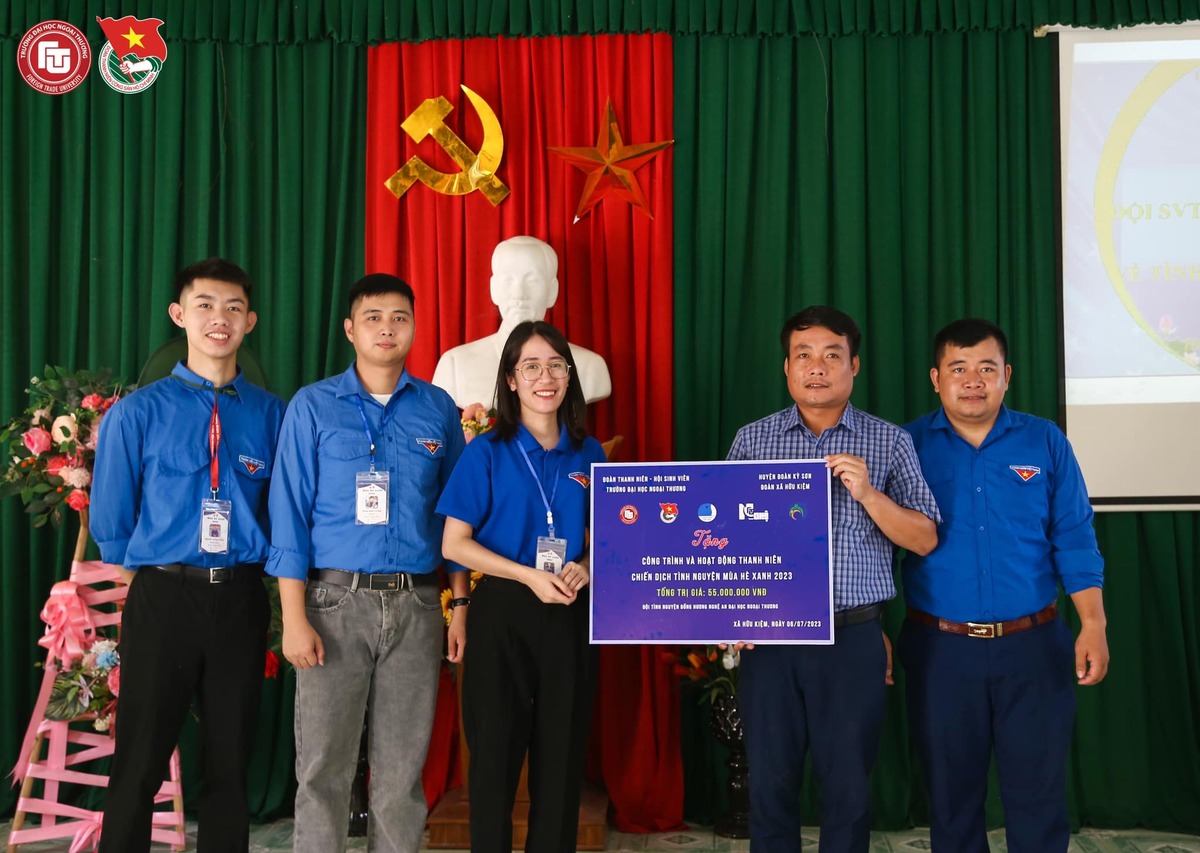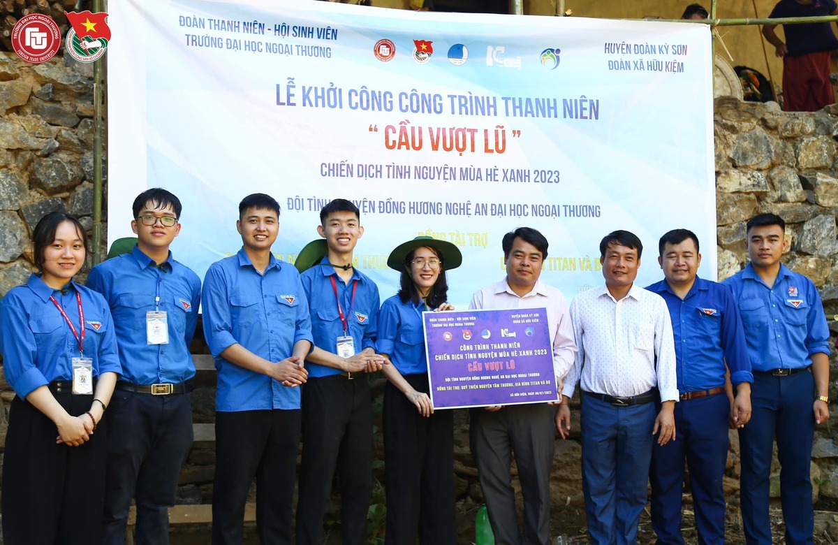 Tại Kỳ sơn Nghệ An, các bạn sinh viên tình nguyện Trường ĐH Ngoại thương đã dừng chân tại các xã Liên Sơn, Thượng Cường, Bằng Mạc, Bắc Thủy, Nhân Lý, Hữu Kiệm và triển khai các hoạt động tình nguyện ý nghĩa giúp đỡ phần nào cuộc sống của người dân, như: Sơn sửa, vẽ nên những bức tranh đầy màu sắc trên con đường làng; Xây dựng những lò đốt rác; Tổ chức các buổi sinh hoạt hè cùng các em nhỏ của địa phương... Bên cạnh đó, đội Thanh niên tình nguyện của Nhà trường còn đóng góp công gây quỹ với tổng giá trị là 55 triệu đồng để hỗ trợ xây dựng các công trình như: Xây cầu sắt vượt lũ, xây dựng sân chơi cho trường Tiểu học, vẽ tường trường Mầm non; Hỗ trợ xây dựng công trình Cầu vượt lũ tại xã Hữu kiệm, Kỳ sơn, Nghệ An.
