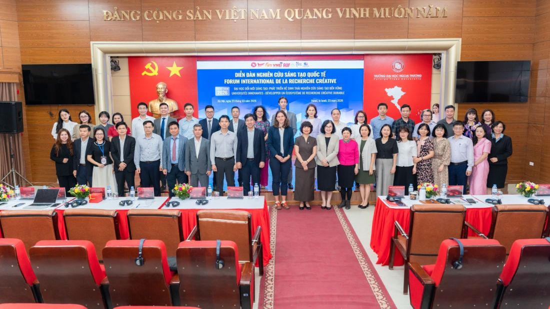 Ngày 23/3/2026, Viện Nghiên cứu Sáng tạo, Trường Đại học Ngoại Thương phối hợp cùng các đơn vị tổ chức thành công Diễn đàn Nghiên cứu Sáng tạo Quốc tế 2026 với chủ đề “Đại học đổi mới sáng tạo: Phát triển hệ sinh thái nghiên cứu sáng tạo bền vững”.