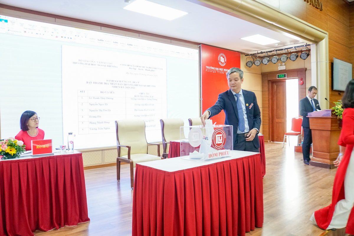 Tại hội nghị, các đại biểu cũng đã tiến hành bỏ phiếu bầu Ban Thanh tra Nhân dân nhiệm kỳ 2020 - 2023. Ban Thanh tra Nhân dân nhiệm kỳ mới cũng đã ra mắt gồm 5 đồng chí: TS. Nguyễn Ngọc Hà - GV Khoa Luật, TS. Phùng Mạnh Hùng - Trưởng Phòng QLDA, PGS, TS Nguyễn Thị Thu Hà - PGĐ CS2 TP. HCM, ThS. Lê Thanh Thùy Dương - GV Khoa Tiếng Trung, ThS. Hoàng Hải - GV Khoa LLCT.