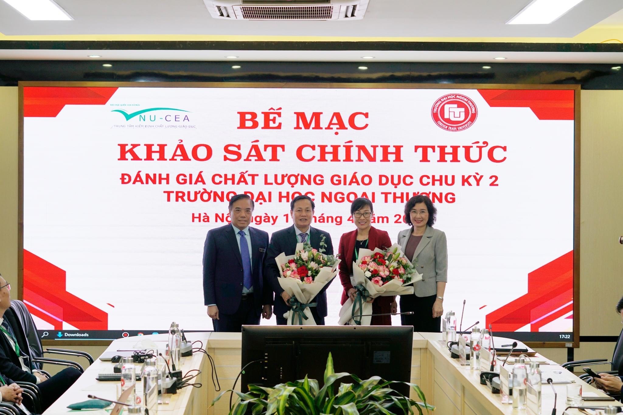 Sau 5 ngày làm việc khẩn trương, nghiêm túc, ngày 19/04/2022, Trường ĐH Ngoại thương đã phối hợp với Trung tâm Kiểm định chất lượng giáo dục, ĐH Quốc gia Hà Nội (KĐCLGD, ĐHQGHN) tổ chức Lễ bế mạc đợt khảo sát chính thức đánh giá chất lượng cơ sở giáo dục đại học trường ĐH Ngoại thương theo bộ tiêu chuẩn của Bộ Giáo dục và Đào tạo, chu kỳ 2.