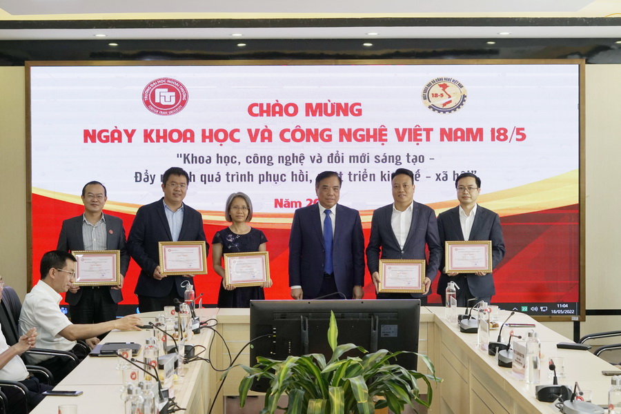 Nhân dịp này, Hiệu trưởng Nhà trường cũng đã trao tặng Giấy khen cho 6 tập thể, 7 nhóm nghiên cứu, 8 giảng viên, 3 câu lạc bộ sinh viên và 3 sinh viên vì đã có thành tích xuất sắc trong hoạt động nghiên cứu khoa học giai đoạn 2019 - 2021.