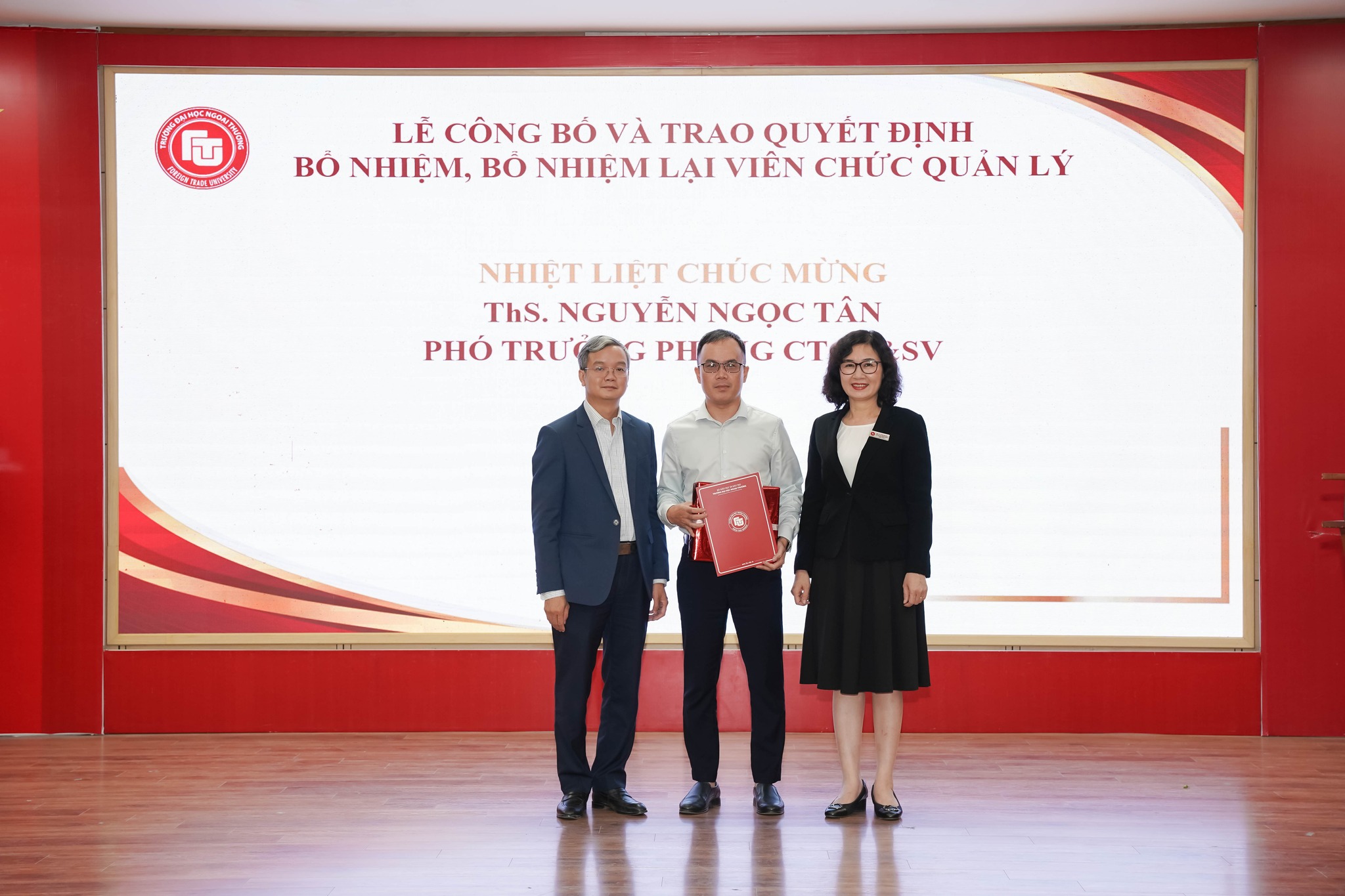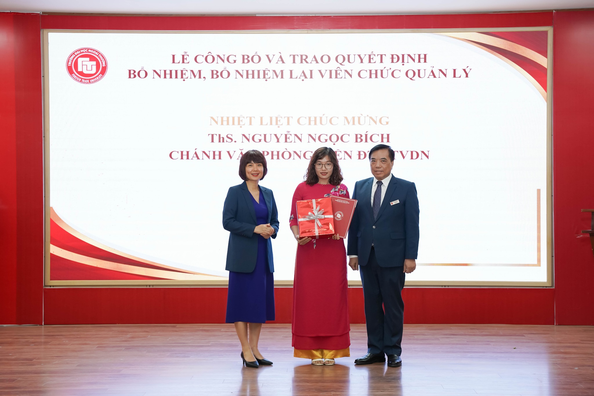 Ngày 13/10/2022, trường ĐH Ngoại thương đã trang trọng tổ chức Lễ công bố các Quyết định bổ nhiệm, bổ nhiệm lại cho 44 viên chức quản lý cấp 1 và 2 năm 2022 và Lễ trao Quyết định bổ nhiệm chức danh Phó Giáo sư cho TS Nguyễn Ngọc Hà - Phó Trưởng Khoa Luật.