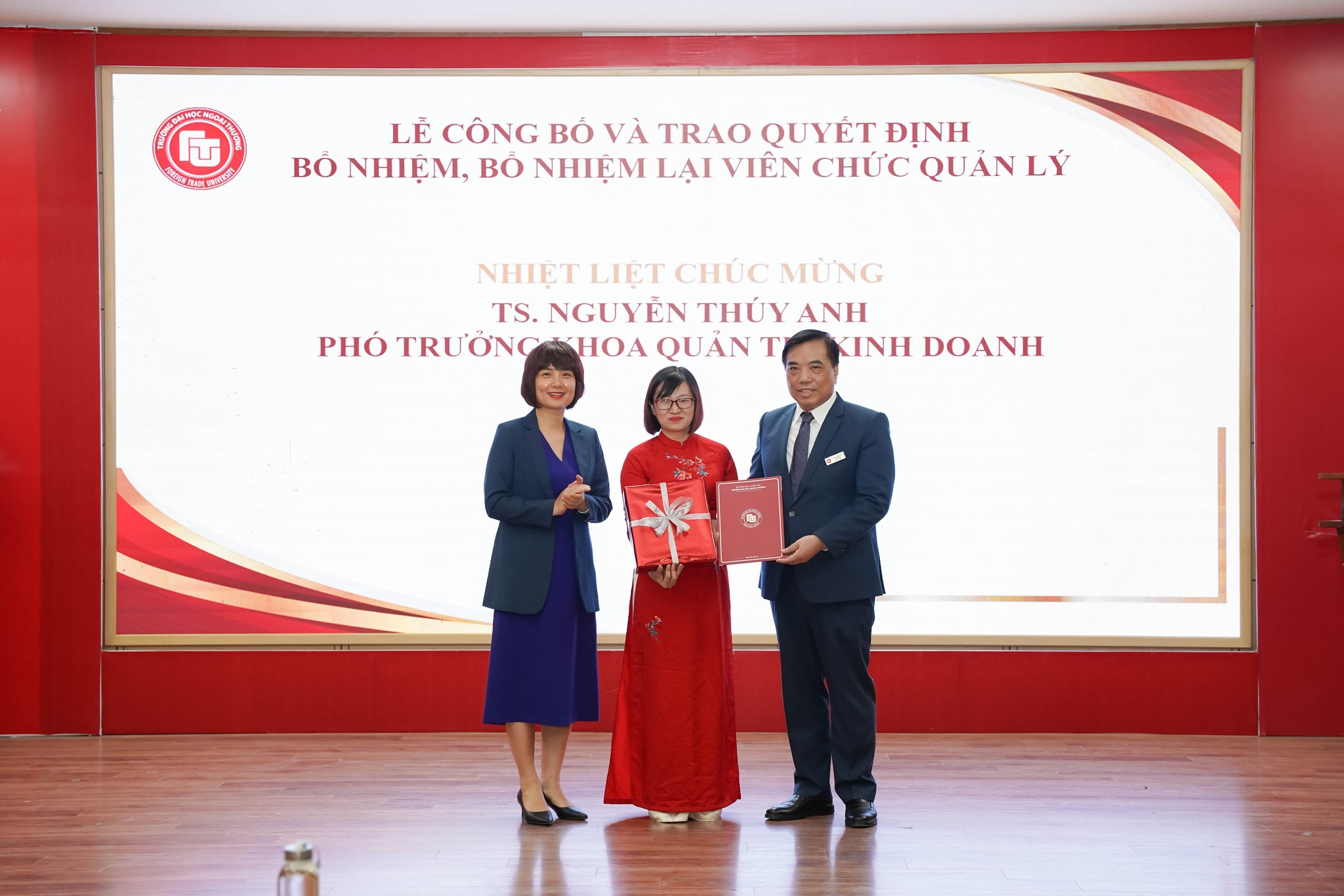 Trao Quyết định bổ nhiệm lại TS. Nguyễn Thúy Anh giữ chức Phó trưởng khoa Quản trị kinh doanh.