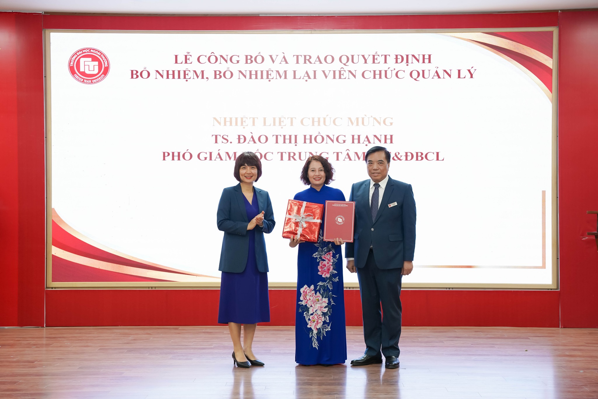 Trao Quyết định bổ nhiệm TS. Đào Thị Hồng Hạnh giữ chức Phó Giám đốc Trung tâm Khảo thí và Đảm bảo chất lượng.