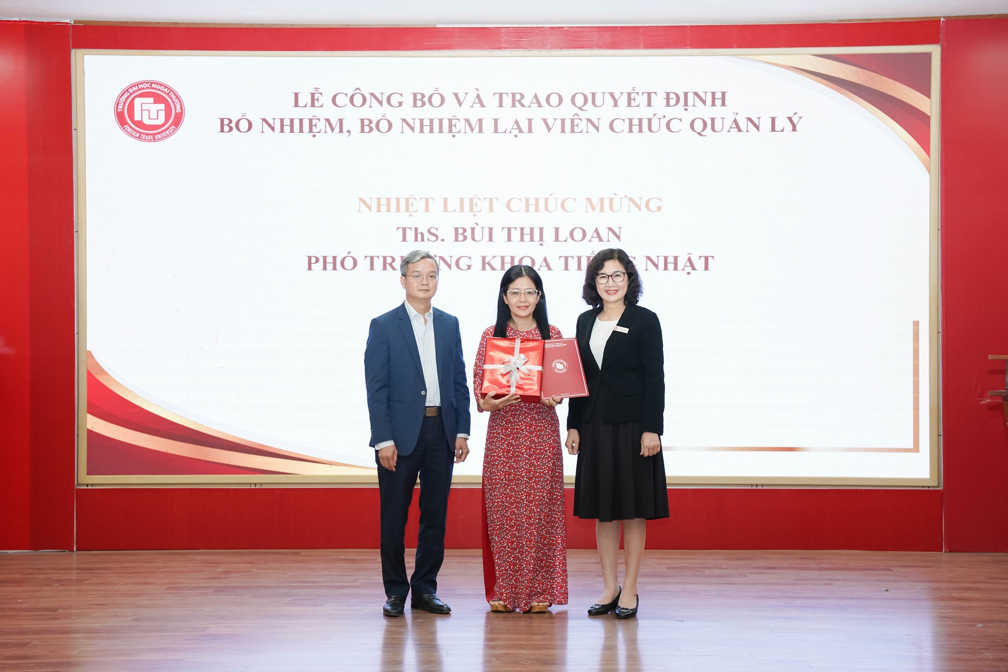 Trao Quyết định bổ nhiệm lại ThS. Bùi Thị Loan giữ chức Phó trưởng khoa Tiếng Nhật.