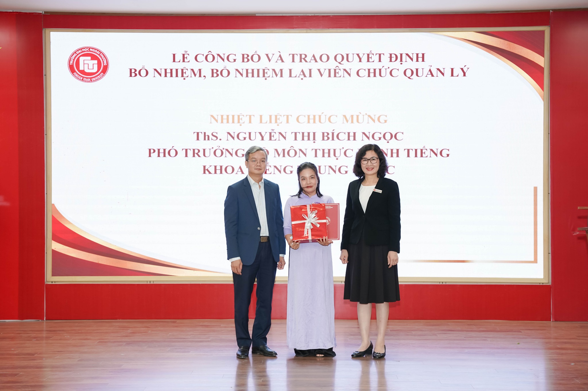 Trao Quyết định bổ nhiệm ThS. Nguyễn Thị Bích Ngọc giữ chức Phó trưởng Bộ môn Thực hành tiếng, Khoa Tiếng Trung Quốc.