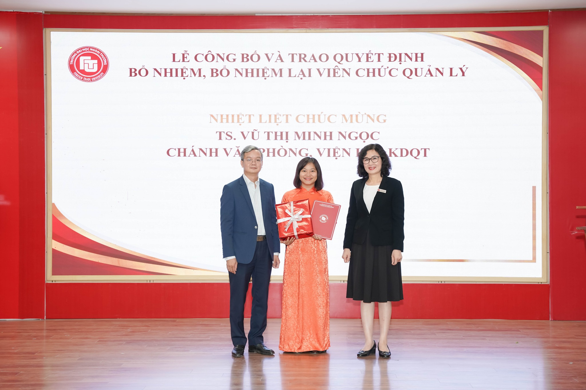 Trao Quyết định bổ nhiệm TS. Vũ Thị Minh Ngọc giữ chức Chánh văn phòng, Viện Kinh tế và Kinh doanh quốc tế.