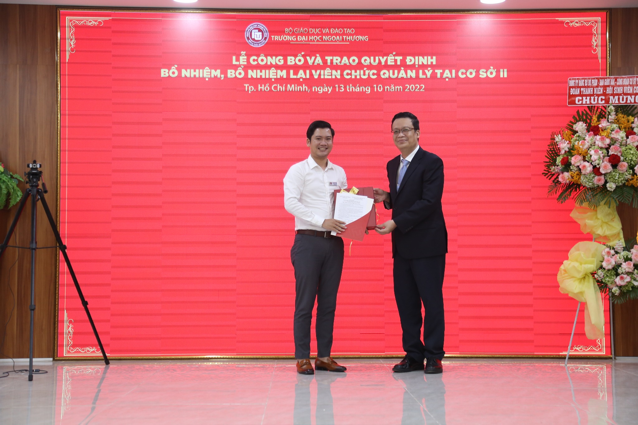 Trao Quyết định bổ nhiệm lại ThS. Tô Bình Minh giữ chức Phó viện trưởng Viện Phát triển nguồn nhân lực Việt Nam - Nhật Bản (VJCC) kiêm Giám đốc Phân viện VJCC tại Cơ sở II.
