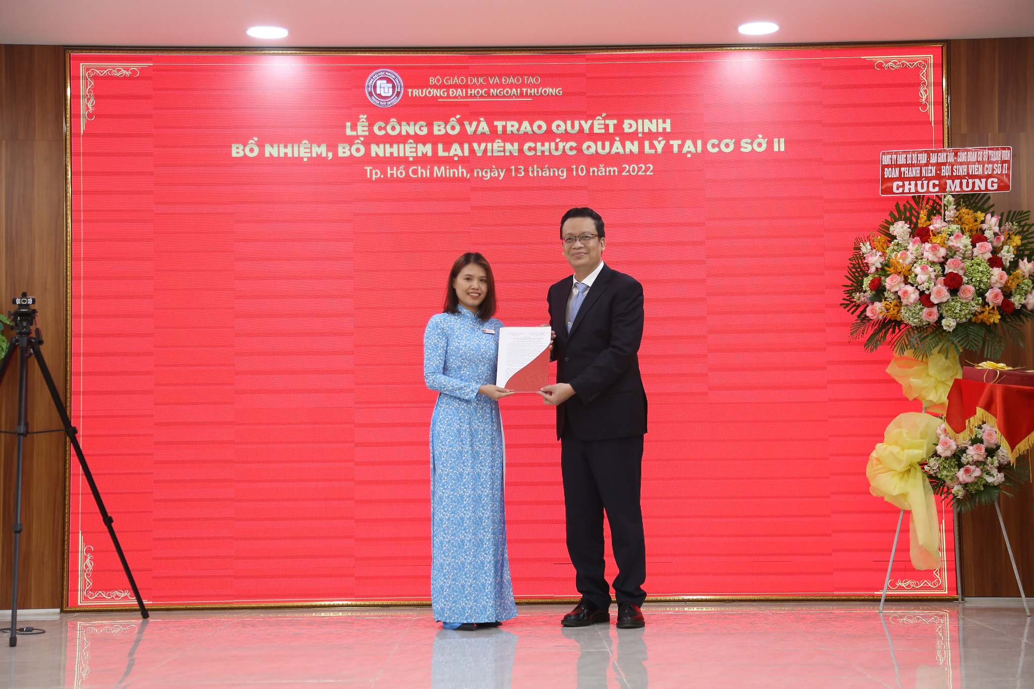 Trao Quyết định bổ nhiệm ThS. Nguyễn Thị Kim Hằng giữ chức Phó trưởng Ban Công tác Chính trị và sinh viên, Cơ sở II.