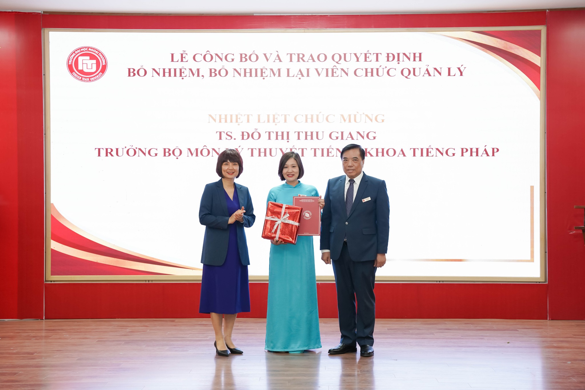 Trao Quyết định bổ nhiệm TS. Đỗ Thị Thu Giang giữ chức Trưởng Bộ môn Lý thuyết tiếng, Khoa Tiếng Pháp.