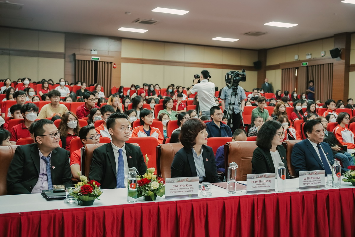 Tham dự tiếp đón Ngài Bộ trưởng, về phía Trường ĐH Ngoại thương có PGS, TS Bùi Anh Tuấn - Bí thư Đảng ủy, Hiệu trưởng Nhà trường; PGS, TS Lê Thị Thu Thủy - Phó Bí thư Đảng ủy, Chủ tịch Hội đồng Trường; PGS, TS Phạm Thu Hương - Phó Hiệu trưởng; PGS, TS Cao Đinh Kiên - Trưởng Phòng Hợp tác quốc tế; Trưởng, Phó các đơn vị trong Trường, cùng các giảng viên, sinh viên Nhà trường.