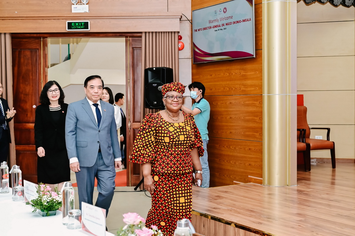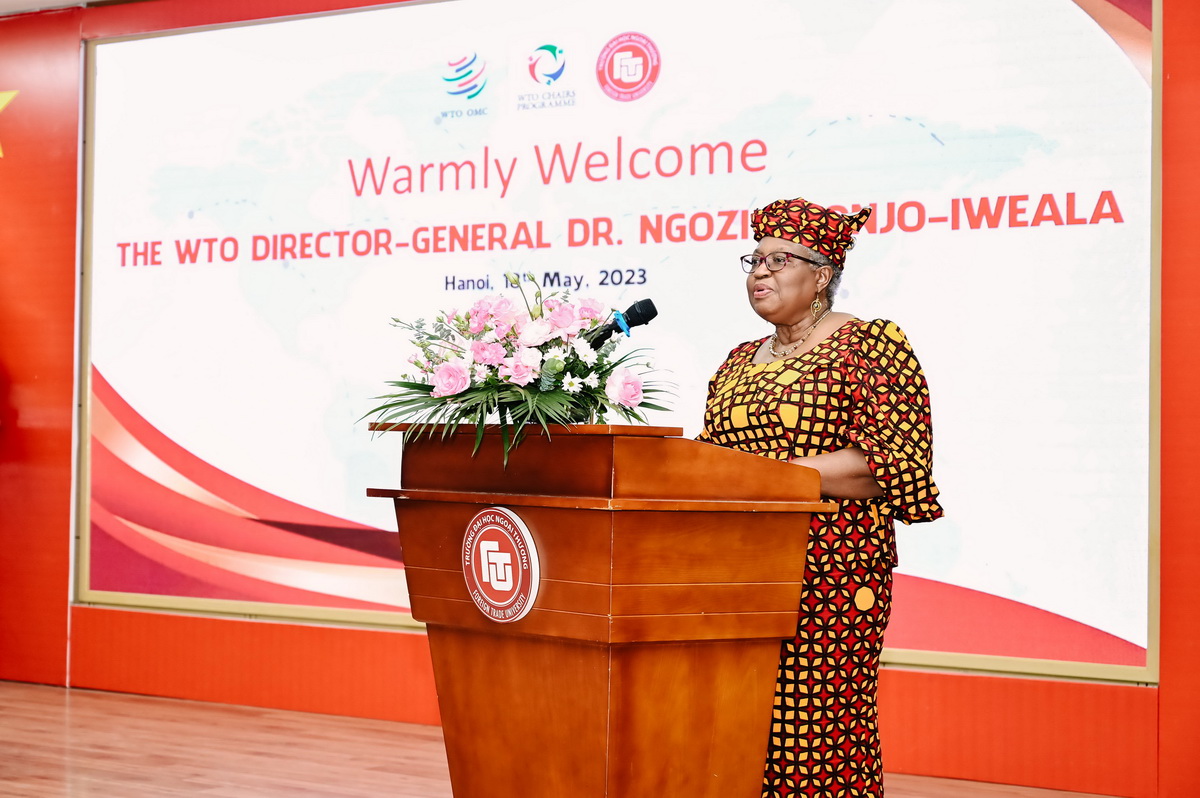 Phát biểu tại sự kiện, TS Ngozi Okonjo Iweala - Tổng Giám đốc WTO bày tỏ niềm vui khi có cơ hội chia sẻ với giảng viên, sinh viên Trường Đại học Ngoại thương - Trường đại học hàng đầu Việt Nam. Bà hy vọng đây là cơ hội tuyệt vời để gặp gỡ các học giả hàng đầu cũng như các nhà lãnh đạo tương lai của Việt Nam. Bà cũng tự hào khi biết kể từ năm 2021, Trường Đại học Ngoại thương đã là một phần của Chương trình WTO Chair của WTO. Ban quản lý dự án Chương trình WTO Chair Trường Đại học Ngoại thương đã rất chủ động làm việc với với chính phủ, khu vực tư nhân và các nhà nghiên cứu từ các quốc gia khác để định hình chương trình nghiên cứu và đào tạo. Các khóa học của Nhà trường dành cho các quan quản lý nhà nước và doanh nghiệp về các vấn đề như ưu đãi thương mại và điều hướng các rào cản kỹ thuật đối với thương mại và các vấn đề cạnh tranh, tạo nên sự khác biệt thiết thực cho sự tham gia của Việt Nam vào các diễn đàn chính sách thương mại và trên thị trường quốc tế.