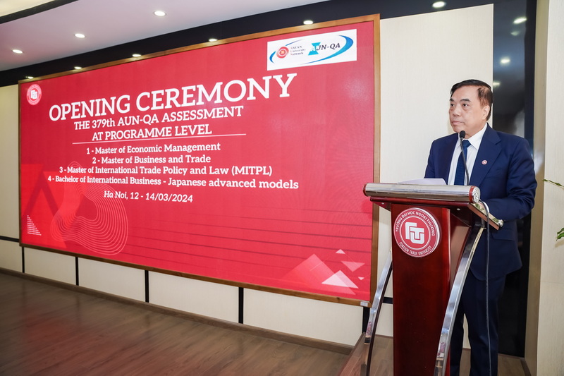 Ngày 12/3/2024, Trường ĐH Ngoại thương đã phối hợp với Mạng lưới các trường Đại học Đông Nam Á (AUN) tổ chức Lễ khai mạc đợt kiểm định 4 chương trình đào tạo (CTĐT) của Nhà trường theo tiêu chuẩn AUN - QA gồm: CTĐT trình độ đại học Kinh doanh quốc tế theo mô hình tiên tiến Nhật Bản; CTĐT thạc sĩ ngành Kinh doanh thương mại theo định hướng ứng dụng; CTĐT thạc sĩ Chính sách và Luật thương mại quốc tế (MITPL) theo định hướng ứng dụng; CTĐT thạc sĩ Quản lý kinh tế theo định hướng ứng dụng.