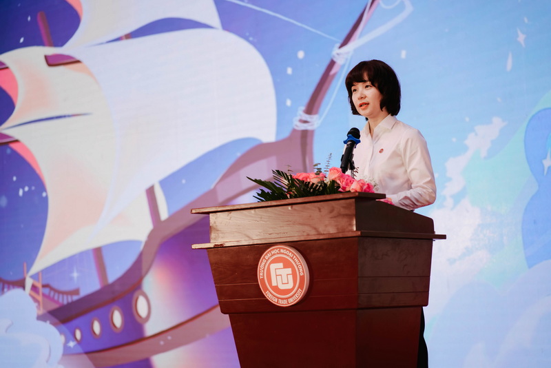 Phát biểu khai mạc chương trình, PGS, TS Phạm Thu Hương nhiệt liệt gửi lời chào mừng tới 2000 các em học sinh cùng các quý phụ huynh đã dành thời gian quan tâm, tìm hiểu và đến tham dự “Ngày hội tuyển sinh - Con đường ra biển lớn năm 2024” để được lắng nghe chia sẻ cụ thể về các chuyên ngành đào tạo, phương thức xét tuyển đồng thời được trực tiếp giải đáp các thắc mắc. Với mong muốn được đồng hành cùng người học trong quá trình tìm kiếm ước mơ cũng như hành trình vươn tới ước mơ, Trường ĐH Ngoại Thương luôn nỗ lực để xây dựng và phát triển hệ sinh thái giáo dục mở có tính hội nhập quốc tế cao, nơi mà người học có thể khám phá và phát huy được những năng lực riêng có để thể hiện được sự xuất sắc trong mỗi cá nhân, nơi mà người học có điều kiện để hình thành tư duy sáng tạo, tư duy thiết kế và phản biện, nơi mà người học soi chiếu và nhận thức về trách nhiệm của mình với bản thân, với những người thân, với những người xung quanh, với cộng đồng và xã hội, nơi mà người học sẵn sàng đương đầu với mọi thử thách, thích ứng với mọi thay đổi bất thường của môi trường cũng như sự phát triển của khoa học công nghệ, nơi mà người học biết chấp nhận sự đa dạng và tôn trọng sự khác biệt, nơi mà người học có điều kiện tiếp cận với thị trường lao động quốc tế, để bước đầu hình thành mạng lưới kết nối và hệ sinh thái của riêng mình.