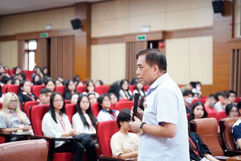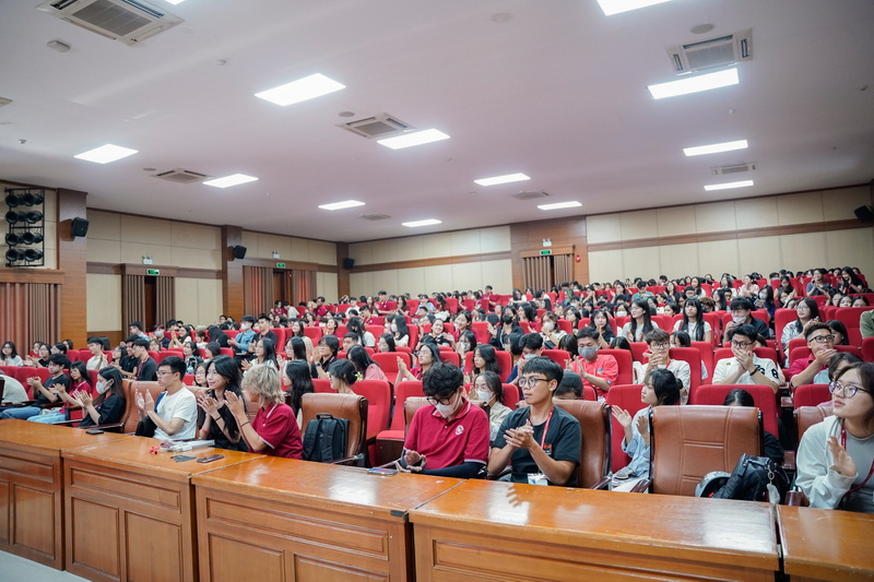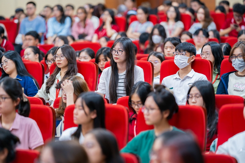 Với phong cách chia sẻ gần gũi, cởi mở, các thầy cô trong Tập thể lãnh đạo Nhà trường đã giúp tân sinh viên nhanh chóng tiếp cận bài giảng, giúp các em thêm hiểu, thêm yêu hơn mái trường sẽ gắn bó với mình trong 4 năm sắp tới.