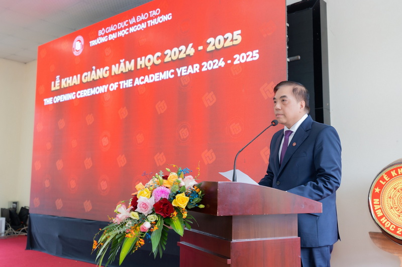 Phát biểu tại buổi lễ, PGS, TS Bùi Anh Tuấn khẳng định, với sự cố gắng và đổi mới không ngừng của thầy cô, viên chức, của người học, sự đồng hành của các tổ chức, các doanh nghiệp, các nhà trường trong và ngoài nước, Trường ĐH Ngoại thương đã hoàn thành xuất sắc nhiệm vụ năm học. Với triết lý giáo dục "Hướng tới khai phóng, gắn liền với thực tiễn, nuôi dưỡng tính trung thực, tinh thần trách nhiệm và năng lực sáng tạo" với phương châm hành động "Khác biệt để dẫn đầu" cùng các giá trị cốt lõi "Sáng tạo - Xuất sắc; Trách nhiệm - Bản lĩnh, Đa dạng - Hòa hợp", Trường ĐH Ngoại thương không chỉ là nơi đào tạo nhân tài mà còn là nơi khơi dậy, nuôi dưỡng và phát huy những tài năng, trí tuệ của từng người học. Cũng trong bài phát biểu lại buổi lễ, PGS, TS Bùi Anh Tuấn đã kêu gọi tất cả cán bộ, giảng viên, người lao động cùng các em sinh viên, học viên, tham gia vào các hoạt động thiện nguyện, hỗ trợ những người bị ảnh hưởng nặng nề sau cơn bão Yagi, và xây dựng tinh thần đoàn kết trong cộng đồng. Mỗi hành động nhỏ, mỗi đóng góp của chúng ta đều có thể tạo ra sự khác biệt lớn. Hệ sinh thái của từng cá nhân chắc chắn đóng góp vào xây dựng một xã hội mạnh mẽ, bền vững hơn.