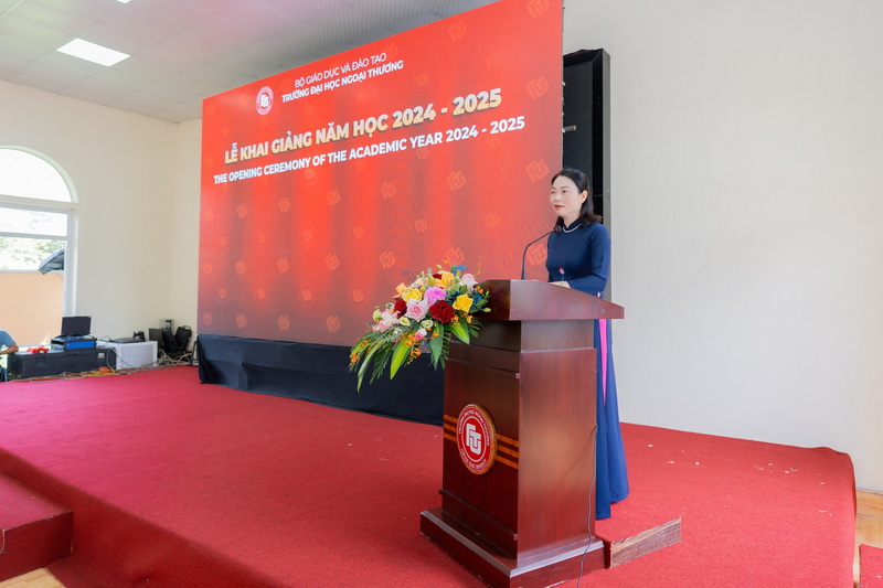 Cũng trong khuôn khổ Lễ Khai giảng, bà Nguyễn Thị Thúy – Giám đốc Sở Giáo dục và Đào tạo Tỉnh Quảng Ninh đã đại diện UBND tỉnh và các Sở/ Ban/ Ngành gửi lời chúc mừng năm học mới tới thầy và trò Cơ sở Quảng Ninh và Nhà trường. Bà Nguyễn Thị Thúy cũng đề nghị Trường Đại học Ngoại thương và Tỉnh Quảng Ninh tiếp tục hoàn thiện việc ký thỏa thuận hợp tác toàn diện giữa hai bên để có những bước phát triển mới cho Tỉnh cũng như Nhà trường.