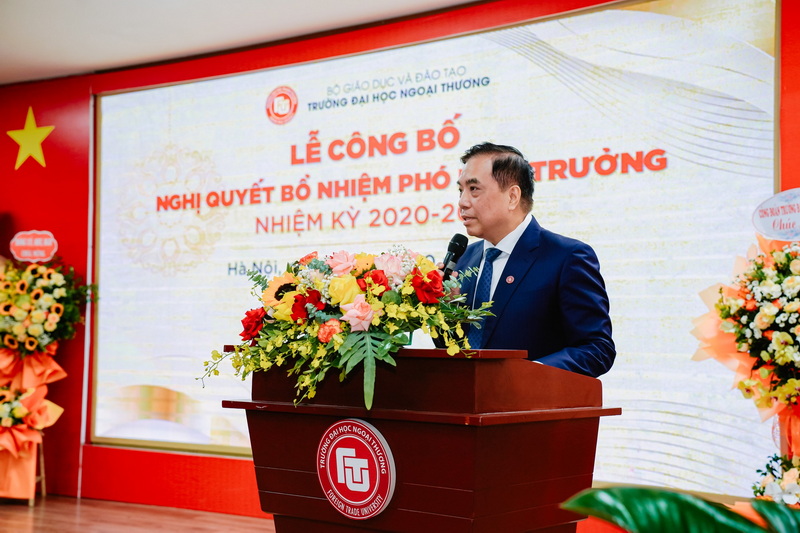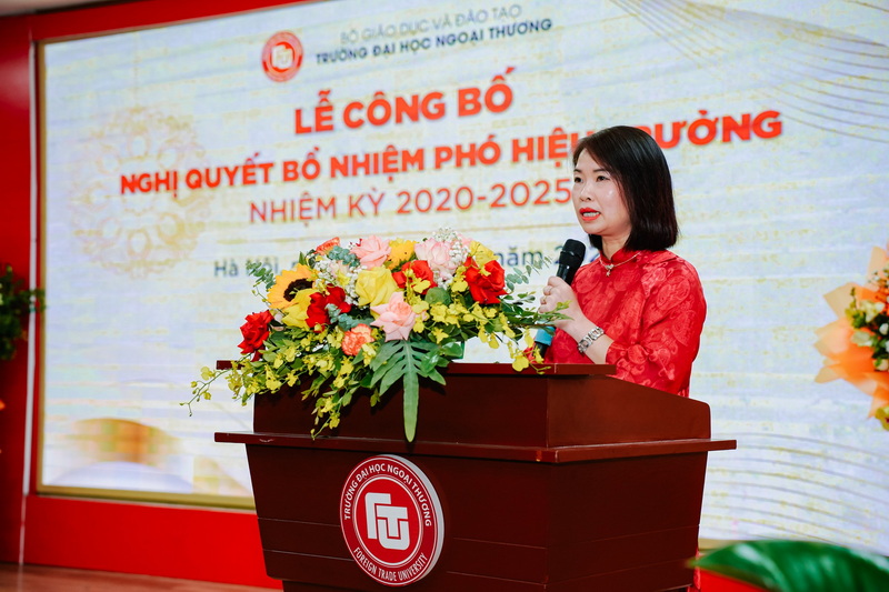 Phát biểu tại buổi lễ, PGS, TS Bùi Anh Tuấn - Bí thư Đảng ủy, Hiệu trưởng Nhà trường đã thay mặt Đảng ủy, BGH và tập thể cán bộ, viên chức Nhà trường nhiệt liệt chúc mừng đồng chí PGS, TS Vũ Thị Hiền đã được tín nhiệm cao và được bổ nhiệm giữ chức Phó Hiệu trưởng Trường Đại học Ngoại thương nhiệm kỳ 2020 - 2025. PGS, TS Bùi Anh Tuấn gửi lời chúc đồng chí Vũ Thị Hiền sẽ vượt qua thử thách, hoàn thành xuất sắc nhiệm vụ được các cấp lãnh đạo, Đảng ủy, Hội đồng trường, Ban Giám hiệu Nhà trường giao phó và thực hiện thành công Chương trình hành động đã báo cáo trước tập thể cán bộ chủ chốt của Nhà trường.