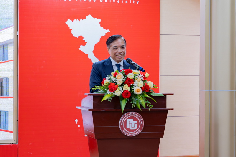 Tại buổi lễ, thay mặt Tập thể Lãnh đạo Trường, PGS, TS Bùi Anh Tuấn đã gửi lời cảm ơn, lời tri ân cùng những lời chúc mừng tốt đẹp nhất tới các thầy cô viên chức, người lao động đã và đang công tác tại Ngoại thương vì sự cố gắng, vì những tâm huyết, vì sự đổi mới sáng tạo trong việc thành công nhiệm vụ năm học 2023 - 2024. Nhân dịp này, Thầy Hiệu trưởng cũng gửi lời cảm ơn tới các thành viên Hội đồng Trường, thành viên Hội đồng Cơ sở, thành viên Hội đồng Khoa, Viện là những cá nhân tổ chức ngoài trường vì đã hỗ trợ Nhà trường trong các hoạt động thời gian qua. Thầy nhận định, trong bối cảnh hiện nay, Trường ĐH Ngoại thương đang bước sang một giai đoạn mới - Giai đoạn của hội nhập quốc tế sâu rộng, cung ứng nguồn nhân lực chất lượng cao cho thị trường toàn cầu, đóng góp tích cực cho việc thực hiện nhiệm vụ xây dựng kỷ nguyên mới của dân tộc. "Năng suất - Chất lượng - Hiệu quả" là mục tiêu quan trọng. "Đổi mới sáng tạo" là động lực cho sự phát triển của Nhà trường. Với mong muốn mỗi người Ngoại thương là người biết đổi mới sáng tạo, dám đổi mới sáng tạo, biết truyền cảm hứng đổi mới sáng tạo và dẫn dắt quá trình đổi mới sáng tạo. đổi mới sáng tạo phải trở thành thước đo, tiêu chí đánh giá đối với từng cá nhân, từng đơn vị trong toàn Nhà trường. Thầy Hiệu trưởng nhấn mạnh rằng Tập thể sư phạm Nhà trường cần cùng nhau xây dựng môi trường làm việc tốt hơn để từng thầy cô, từng viên chức, người lao động thực sự cảm thấy Nhà trường là gia đình thứ 2, dù đi đâu xa cũng mong muốn được trở về.