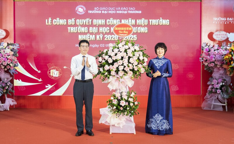 Công đoàn - Đoàn Thanh niên - Hội sinh viên tặng hoa chúc mừng Tân Hiệu trưởng Trường Đại học Ngoại thương.