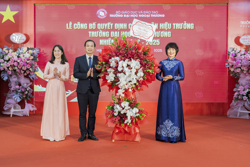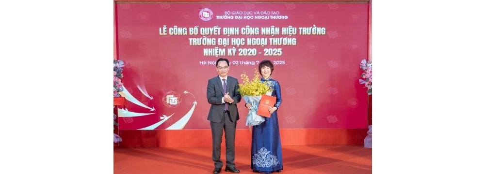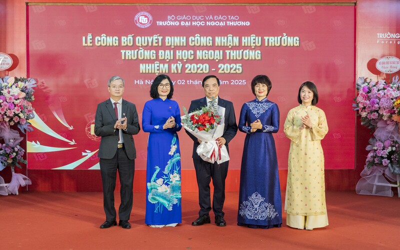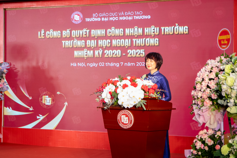 Sáng ngày 02/7/2025, Trường Đại học Ngoại thương đã long trọng tổ chức Lễ Công bố Quyết định số 636, ngày 06/3/2025 của Bộ trưởng Bộ Giáo dục và Đào tạo về việc công nhận PGS, TS Phạm Thu Hương giữ chức Hiệu trưởng Nhà trường nhiệm kỳ 2020-2025 kể từ ngày 01 tháng 7 năm 2025.