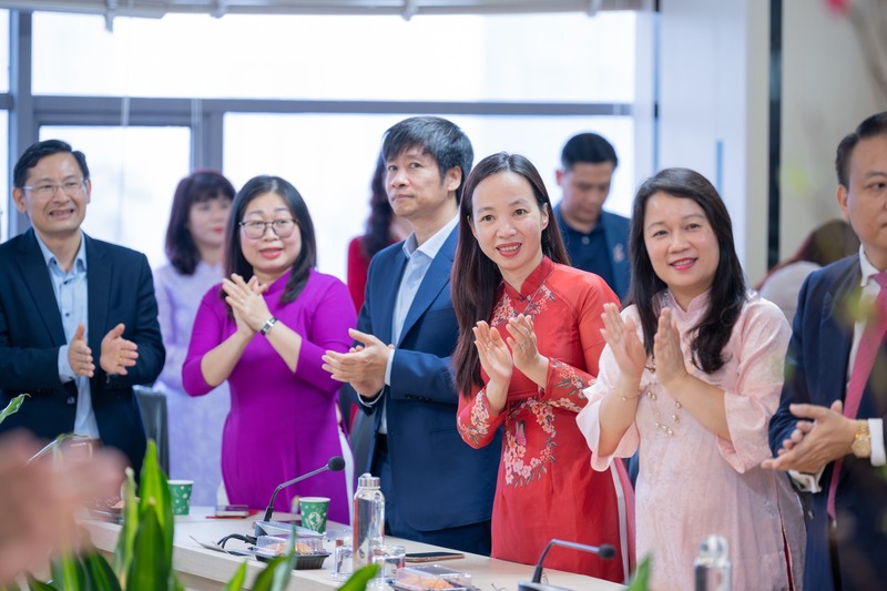 Đón tiếp Đoàn công tác, về phía Nhà trường có PGS, TS Phạm Thu Hương – Bí thư Đảng uỷ, Hiệu trưởng; PGS, TS Lê Thị Thu Thủy – Phó Bí thư Đảng uỷ, Chủ tịch Hội đồng Khoa học và Đào tạo; PGS, TS Đào Ngọc Tiến – Thường vụ Đảng uỷ, Phó Hiệu trưởng; PGS, TS Vũ Thị Hiền – Đảng uỷ viên, Phó Hiệu trưởng; TS Phùng Mạnh Hùng – Chủ tịch Công đoàn Trường, Trưởng Phòng Quản lý Dự án; ThS Đoàn Anh Tuấn – Bí thư Đoàn Thanh niên; ThS Lê Hoàng Liên – Trưởng phòng Hành chính – Tổng hợp; cùng đại diện lãnh đạo các đơn vị trong Trường.