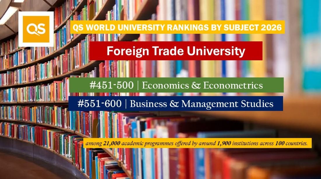 Ngày 25/3/2026, tổ chức QS Quacquarelli Symonds (QS) đã công bố bảng xếp hạng các trường đại học trên thế giới theo lĩnh vực, trong đó Trường Đại học Ngoại Thương lọt vào Top 451-500 thế giới trong lĩnh vực Kinh tế & Kinh tế lượng và Top 551-600 thế giới trong lĩnh vực Kinh doanh & Quản lý.